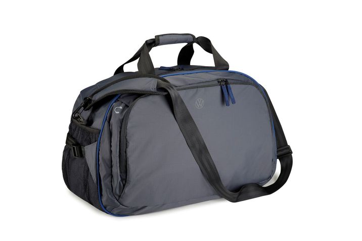 Geantă practică, cu un compartiment principal cu fermoar, două buzunare laterale din plasă şi un buzunar frontal. Dimeniuni: 49 x 23 x 33 cm